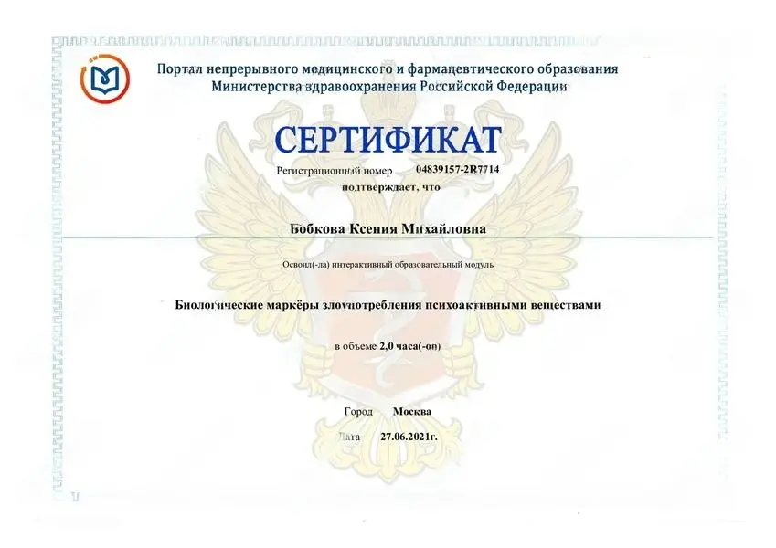 Бобкова Ксения Михайловна добилась значительных успехов в области лечения алкогольной и наркотической зависимости, внедрив в практику метод комплексного подхода, который сочетает медикаментозную детоксикацию с индивидуальными психотерапевтическими сеансами. Благодаря этому методу многие её пациенты достигли устойчивой ремиссии и вернулись к полноценной жизни.